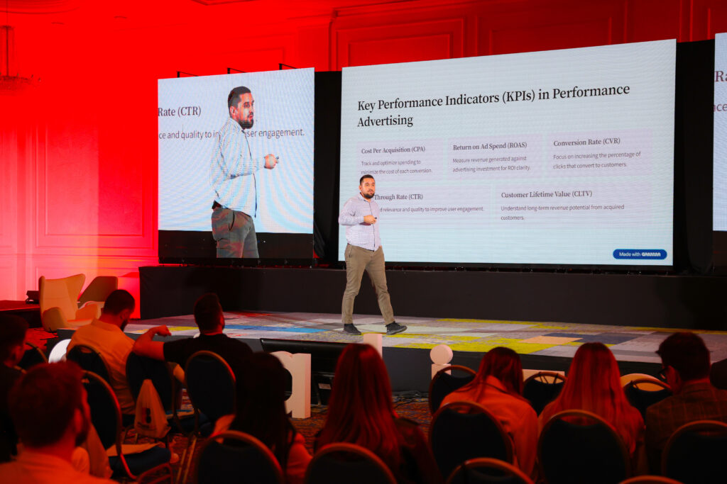 Клучните KPI индикатори: CPA, ROAS, CVR и CLTV, беа во фокусот на презентацијата, со акцент на нивното следење и оптимизирање. Халиловиќ демонстрираше како се дефинира јасна цел, се избира соодветна платформа, се користи A/B тестирање и се имплементира тракинг што не остава простор за „гатање“.